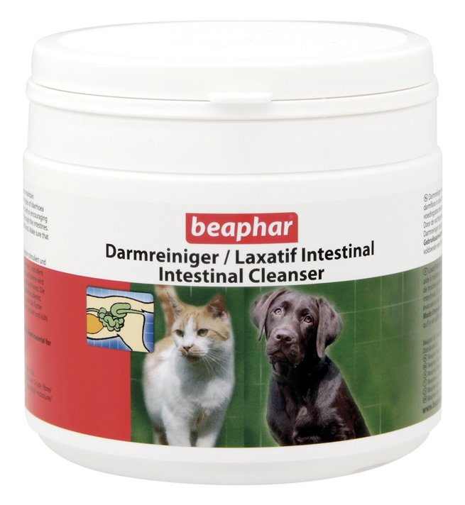 Darmreiniger is een zuiver plantaardig natuurproduct dat reuk- en smaakloos is, de darmwerking bevordert en de darmflora in stand helpt te houden. Darmreiniger neemt vocht op en dient als hulpmiddel bij dunne en harde ontlasting. De vezels van dit product reinigen de darm en voorkomen irritatie van de darmwand. Door de vochtopname wordt de darminhoud groter en soepeler wat de ontlasting gemakkelijker op gang brengt. Darmreiniger bevordert tevens de afvoer van opgelikte haren, waardoor het helpt haarballen te voorkomen.