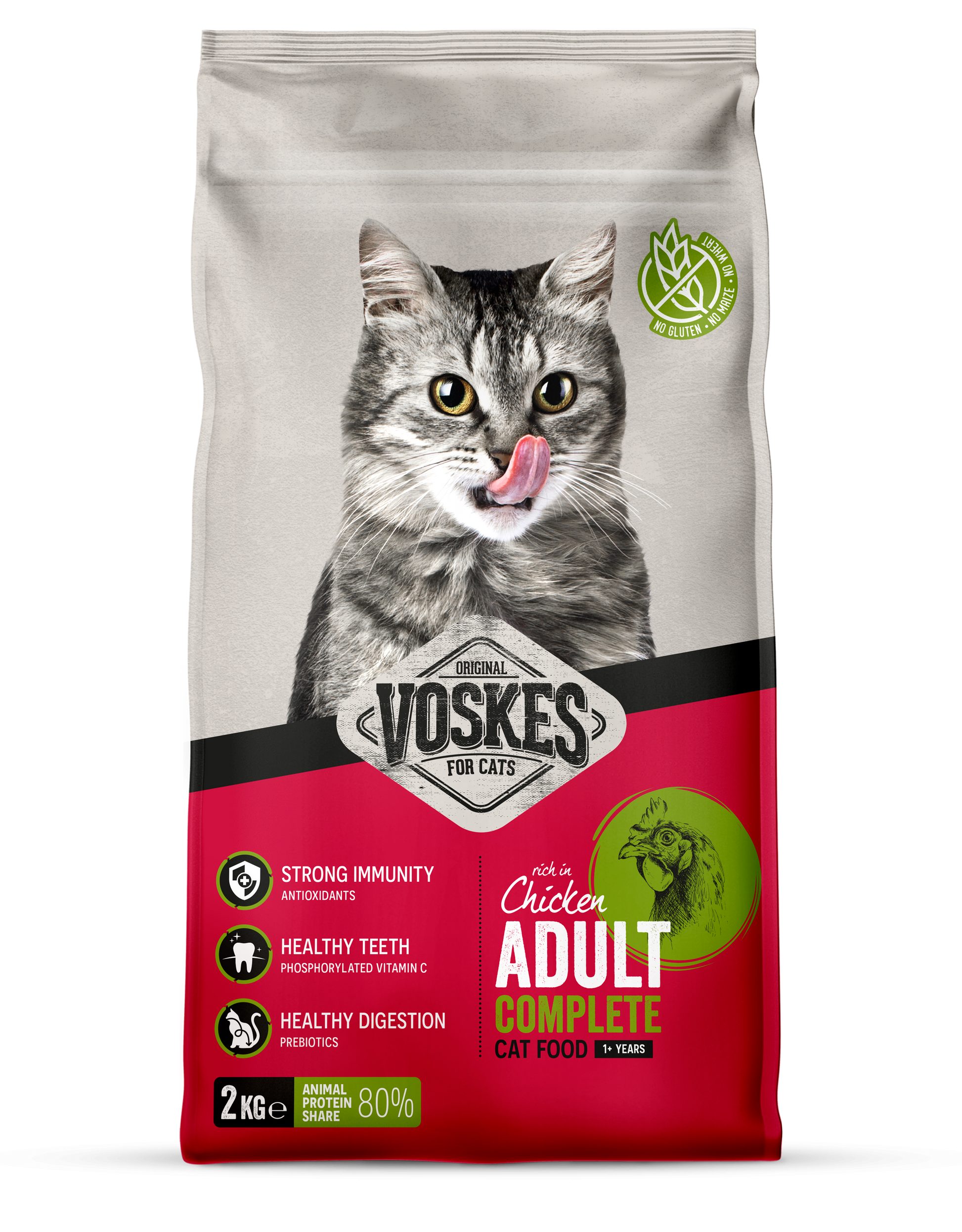 Compleet diervoeder voor volwassen katten. Een optimale weerstand en een gezonde spijsvertering worden ondersteund door toevoeging van een unieke blend van gedroogde planten - van nature rijk aan antioxidanten - aangevuld met prebiotica en ?-glucanen. Klinische studies tonen aan dat de vorming van tandplak en tandsteen worden verminderd door de toegevoegde gefosforyleerde vitamine C. De hoeveelheid mineralen is afgestemd om een goede pH-waarde te bevorderen en bij te dragen aan gezonde urinewegen. Visolie bevordert een gezonde huid en vacht. Plantaardige vezels en bietenpulp helpen om minder haarballen te vormen. Samengesteld zonder maïs of tarwe.gedroogde kip (32%), rijst, dierlijk vet, erwten, gedroogde aardappelen, bietenpulp, mineralen, gehydrolyseerd kippeneiwit, plantaardige vezel, biergist, visolie, G.O.S., M.O.S., F.O.S., ?-glucanen, gedroogde planten (Rosmarinus sp., Curcuma sp., Eugenia sp.)32% ruw eiwit; 19% ruw vet; 1,8% ruwe celstof; 7,4% ruwe as; 1,45% calium; 1,15% fosforZorg voor een geleidelijke overgang wanneer u een nieuwe voeding geeft. Volg de richtlijnen van de voedingstabel. Zorg dat er altijd vers drinkwater beschikbaar is. Koel en droog bewaren. Na opening de zak goed sluiten na elk gebruik. Houd de zak buiten h