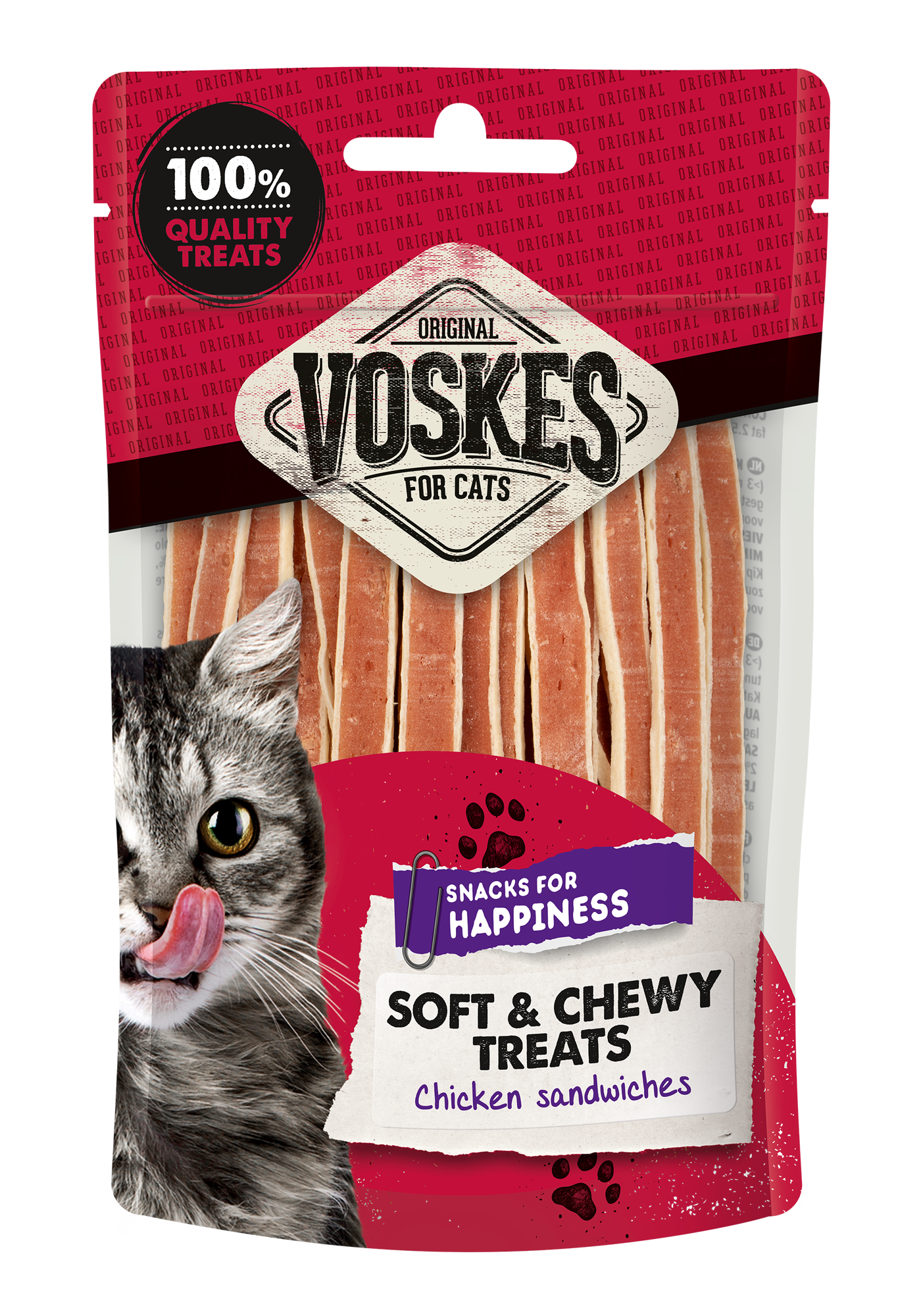 Deze smakelijke beloningsnack op basis van kip en vis is een heerlijke traktatie voor kittens of volwassen katten. Kip 59,8%, vis 15%, plantaardige eiwitten 8%, tarwebloem 6%, tapiocazetmeel 6%, glycerine 5%, zout 0,2%.Geef verantwoord, afgestemd op het gewicht en inspanning van uw kat. Zorg altijd voor voldoende vers drinkwater voor je kat. BEWAARADVIES: koel, droog en indien mogelijk donker bewaren.